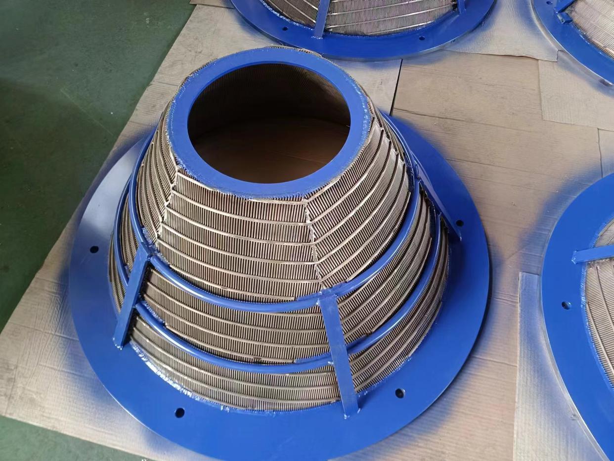 The Conical centrifuge baskets is one of the key components of the centrifugal sieve.It is a high-speed rotating component. When working, the Conical centrifuge baskets must not only withstand vibration loads, but also withstand severe impacts from coal and water, so the strength and precision requirements are relatively high.