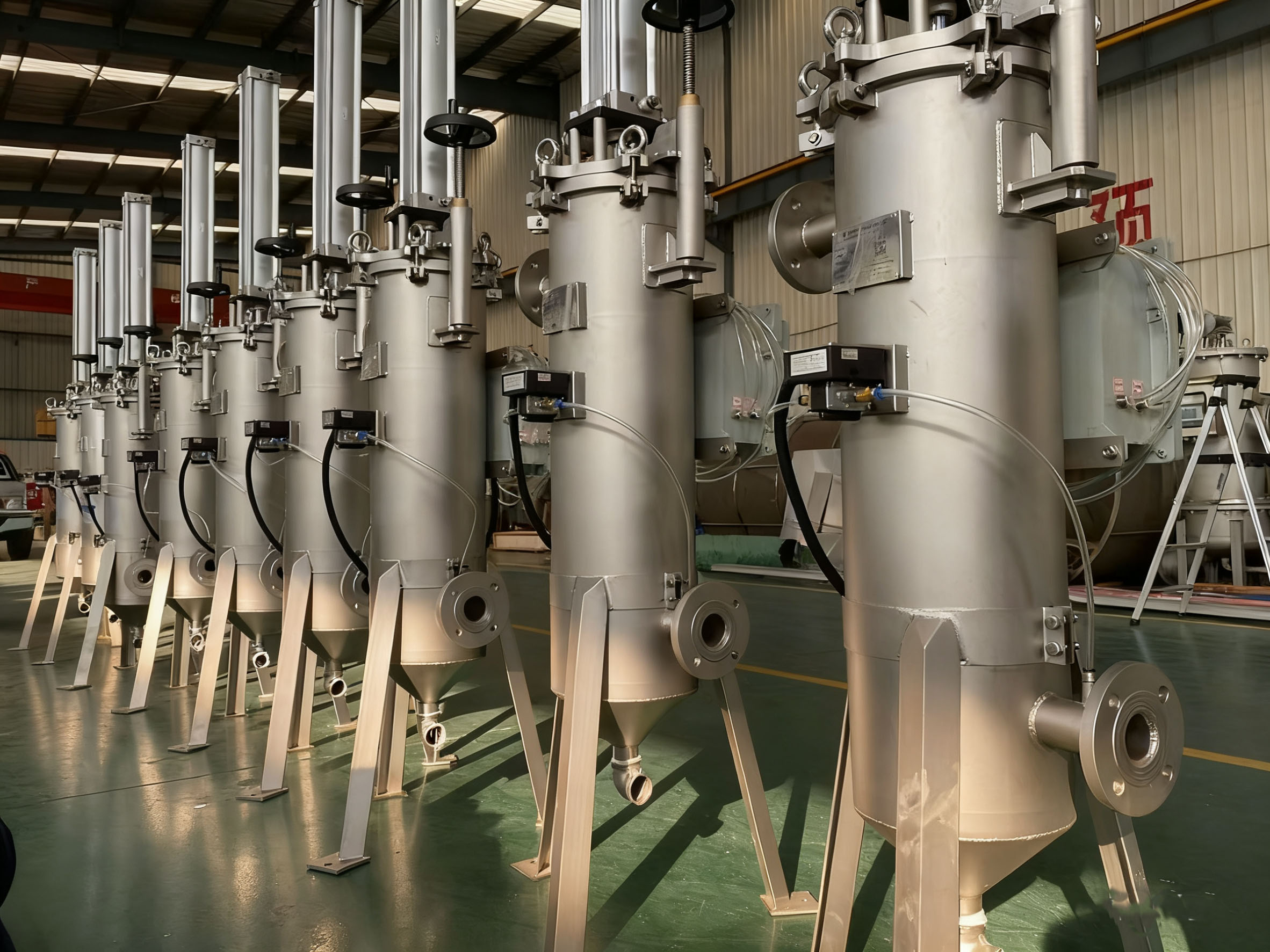 Pneumatic scraping self-cleaning filter is suitable for viscous liquid filtration, such as wax, coal oil, monomer, polymer, citric acid, fermented broth,